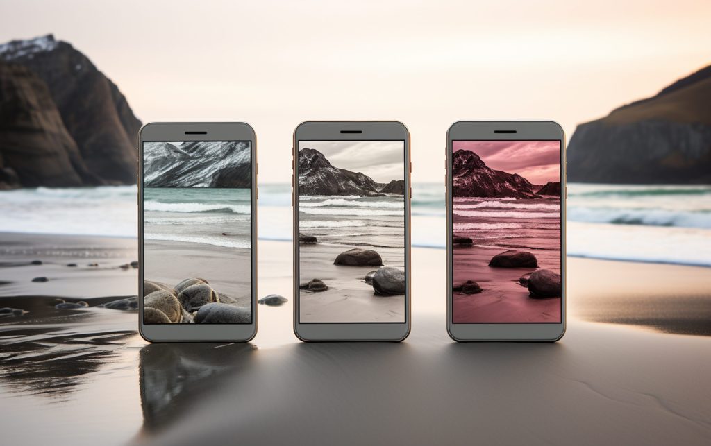 オシャレなiPhone画面とインテリアの写真
