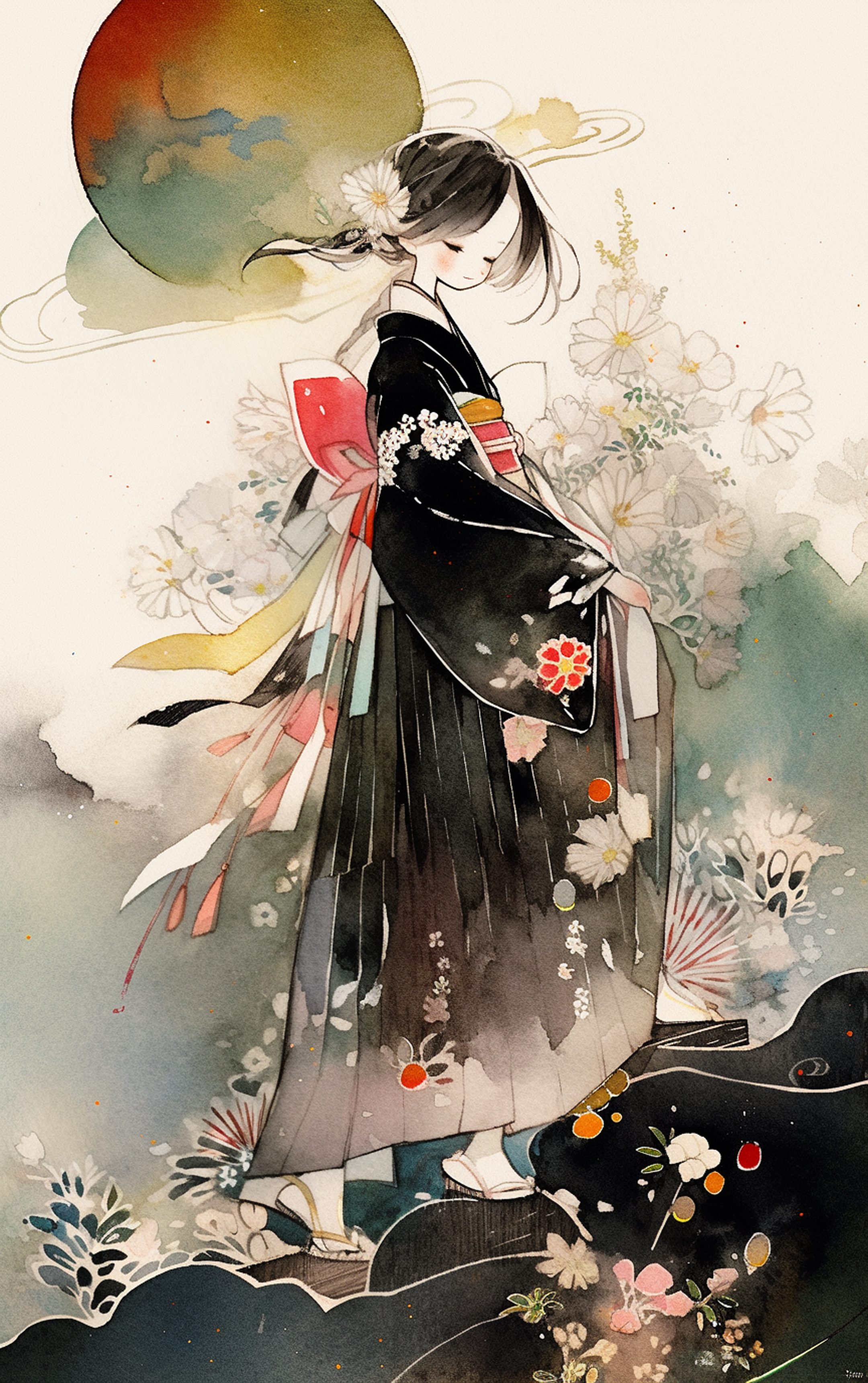 抽象女子 水彩画風