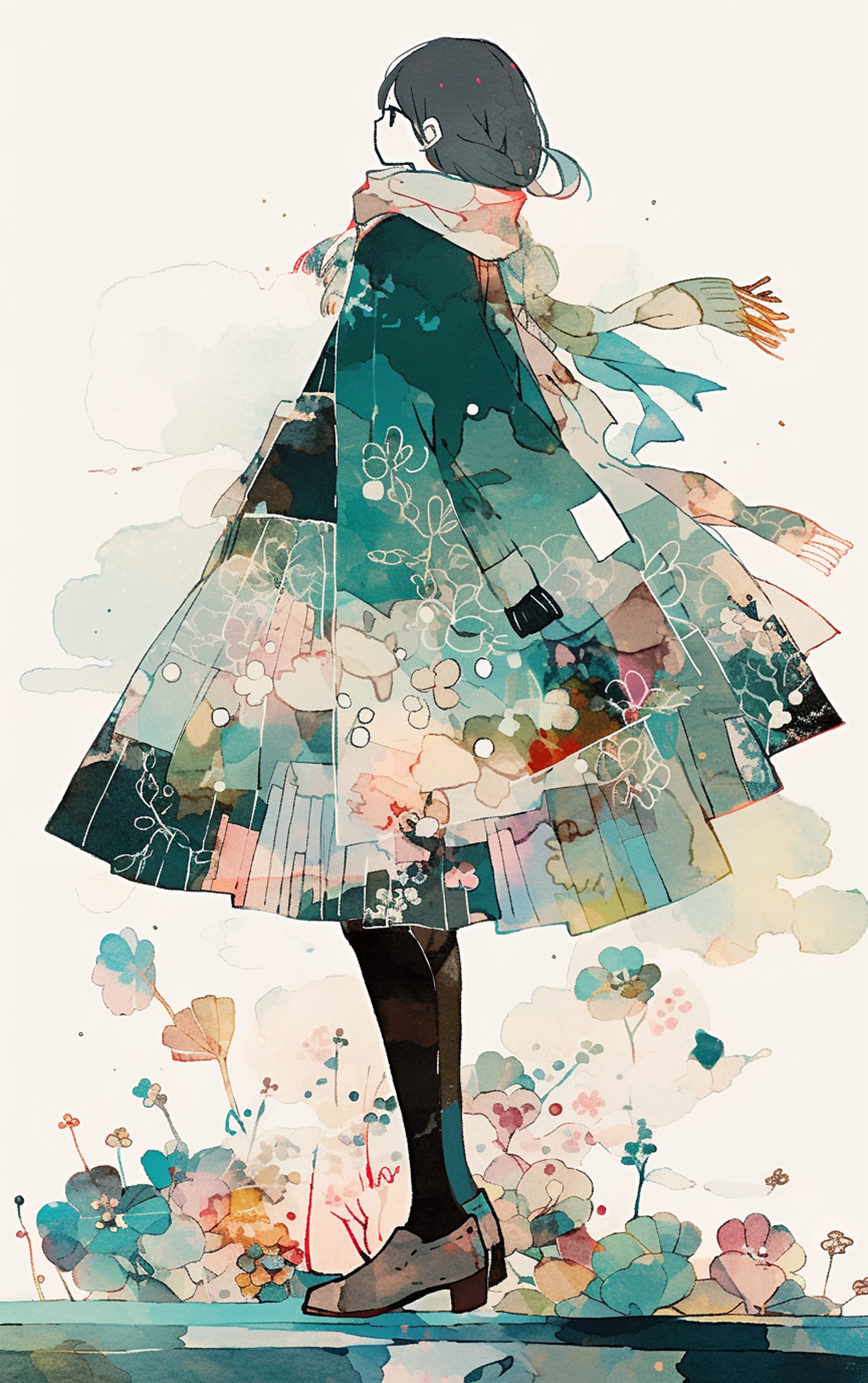 抽象女子 水彩画風