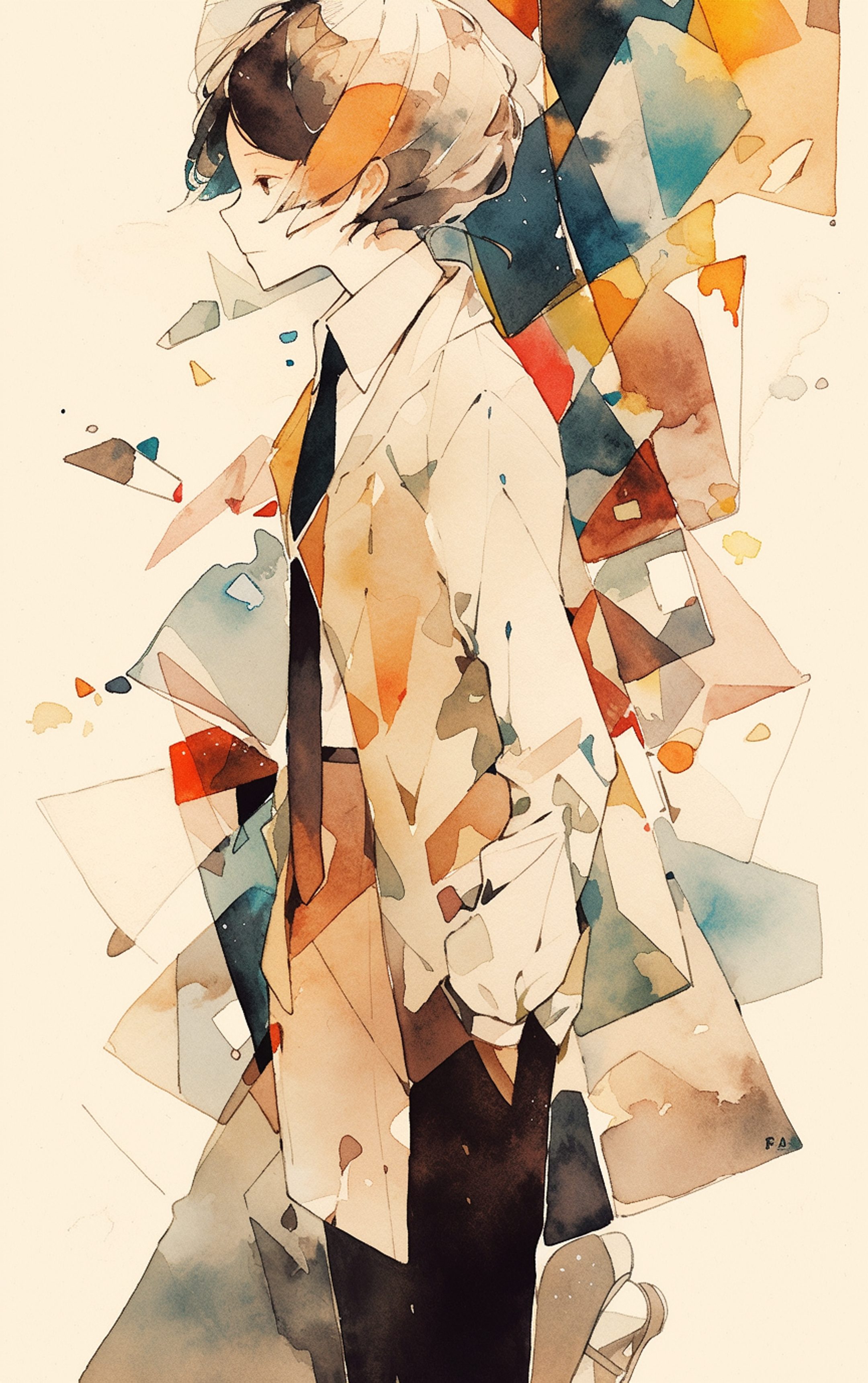 抽象男子 水彩画風