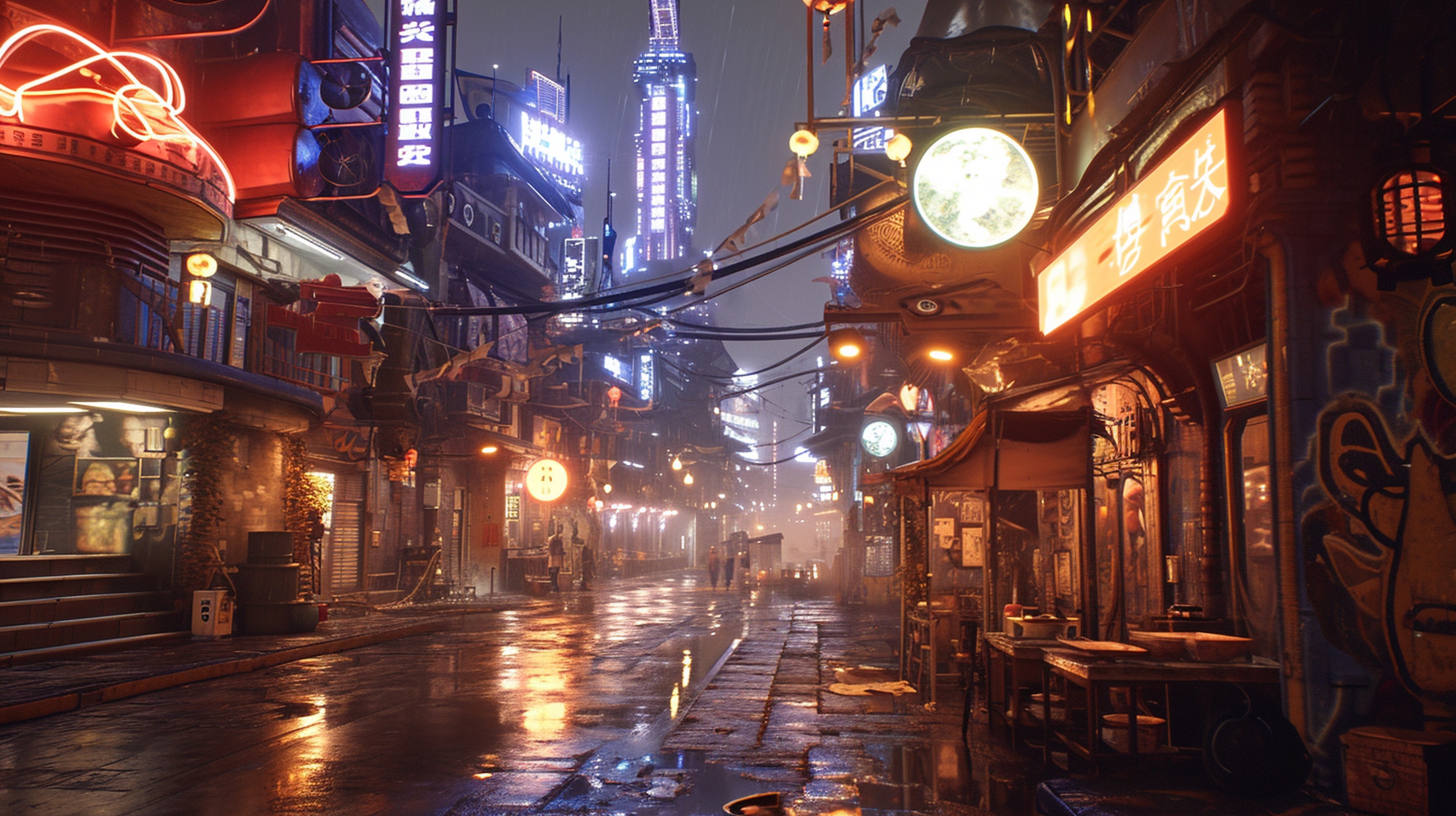 サイバーパンクな未来都市の風景 3DCG立体画像
