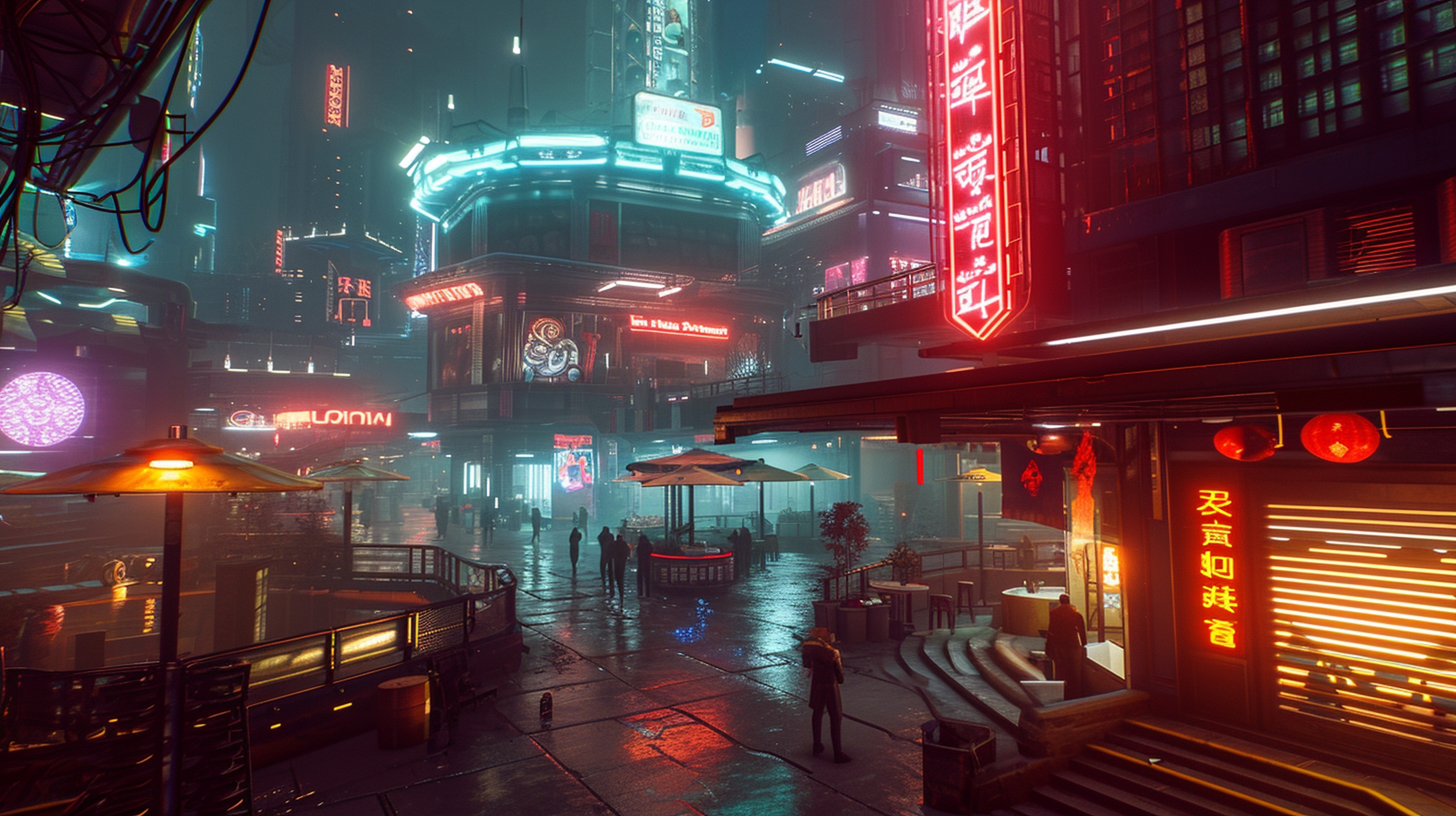 サイバーパンクな未来都市の風景 3DCG立体画像