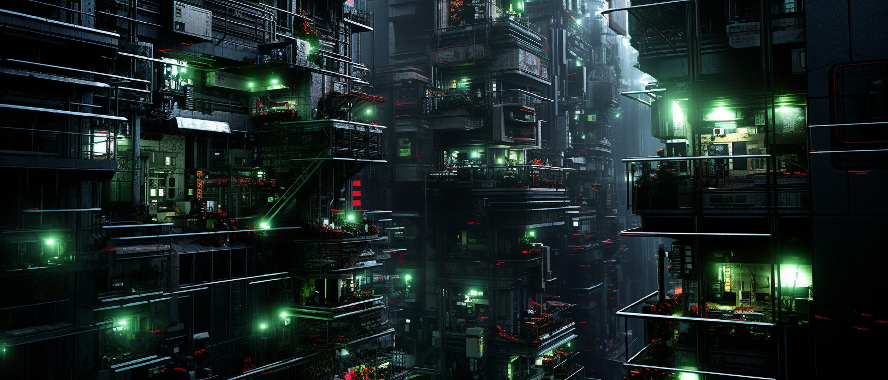 サイバーパンクな未来都市の風景 3DCG立体画像